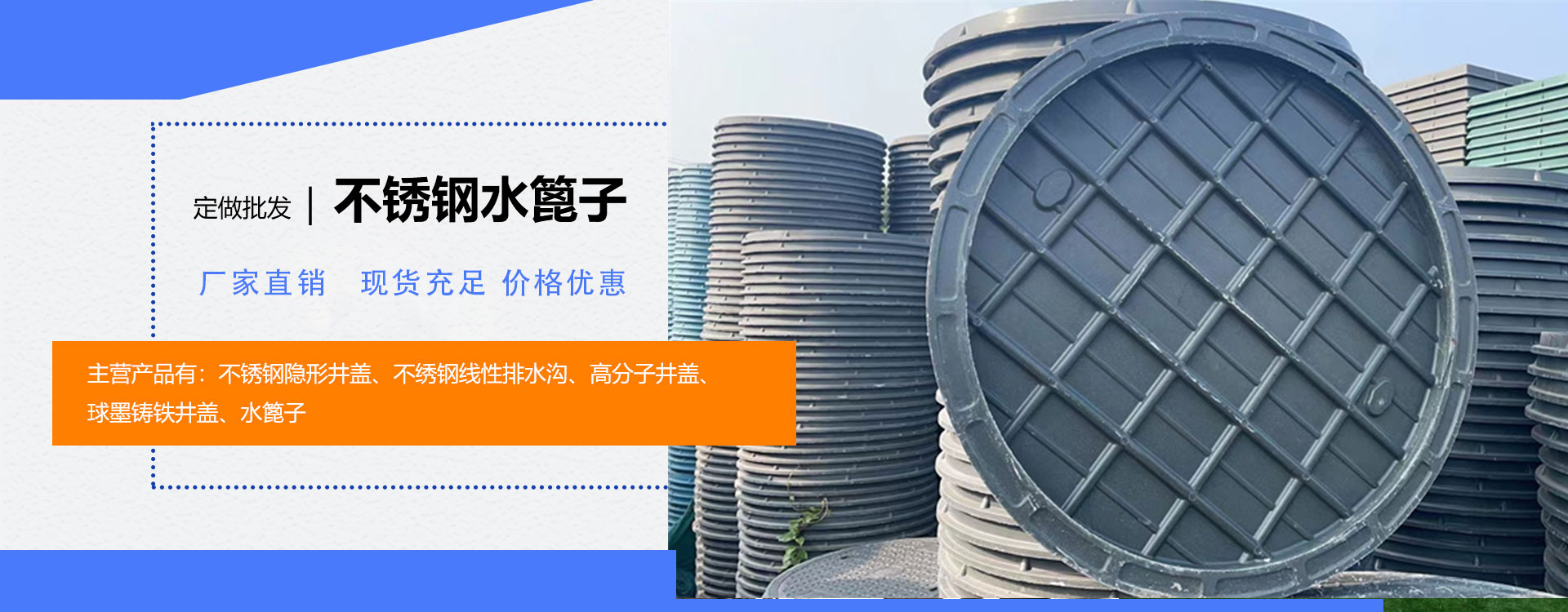 年產(chǎn)各種高分子水篦子,五防井蓋等產(chǎn)品眾多大規(guī)模倉(cāng)庫(kù)儲(chǔ)備